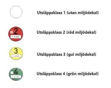 Listan på miljöplaketter ger vid handen att fjärde klassens fordon är de mest miljövänliga, då de förorenar minst. Det är också tydligt att miljöplaketterna har färgkoder – gröna, gula och röda dekaler.