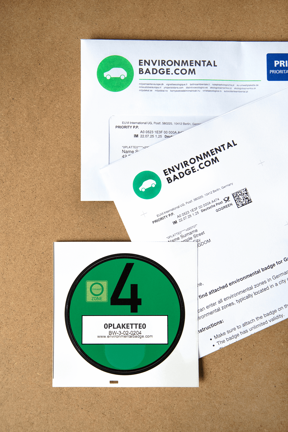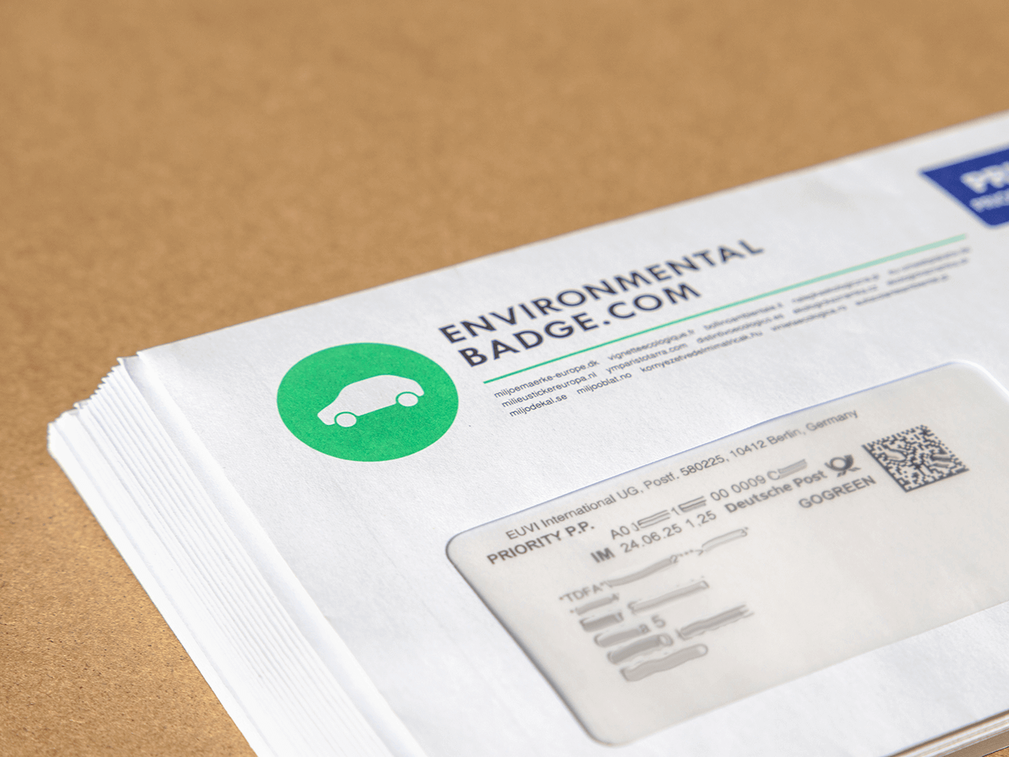 Du kan beställa miljöplaketten för Tyskland lika enkelt som miljöplaketten för Frankrike eller Österrike. Miljöplaketten gäller alltid på obegränsad tid för registreringsskylten på fordonet den utfärdades för.