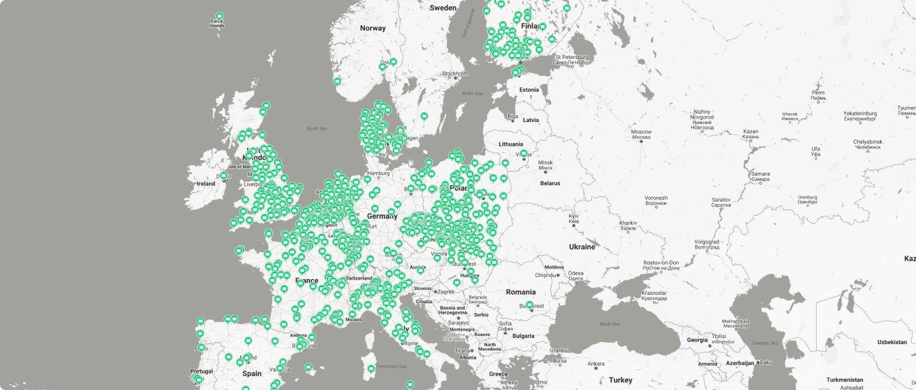 Miljödekaler skickas från Berlin, Köpenhamn, Brno och Paris.