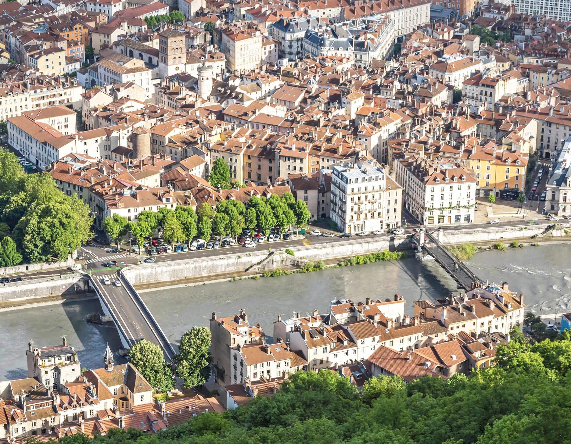 Grenobles miljözon omfattar stadens centrala delar och avgränsas av floderna Drac och Isere, samt vägarna D1090 och D1532.