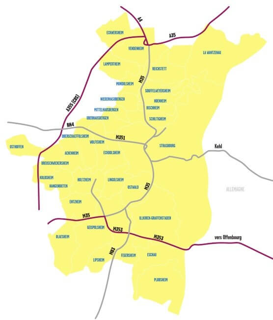 Strasbourgs miljözon omfattar alla 33 kommuner i regionen. Restriktionerna berör inte de stora trafiklederna A4, A35, N83, N353 och D1083.